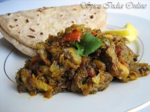 Baingan means Brinjal / Eggplant / Aubergine and Bharta means Mashed.  Baingan Bharta (Mashed Eggplant ) is a punjabi dish, prepared in unique way. Roasting in clay oven is the secret to make this dish to get that special aroma.