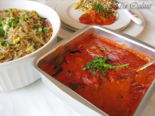 Serving : Straight from the oven with light cilantro garnish and cream and serve with Naan bread or choice of rice. Good with any flat bread, fried rice, pilaf, light less spicy variety rice or even plain cooked basmati rice