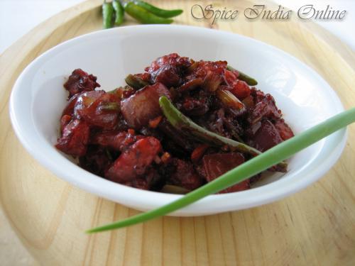 Whenever I make this dish, mostly as an accompaniment for fried rice, it would disppear in minutes. Can't resist temptation, would gobble few pieces myself, while its still simmering over the stove. Would love to hear your feedback.