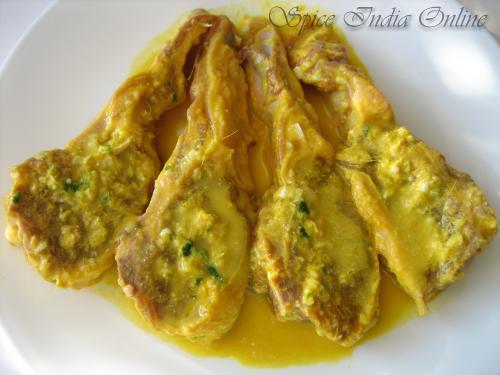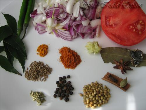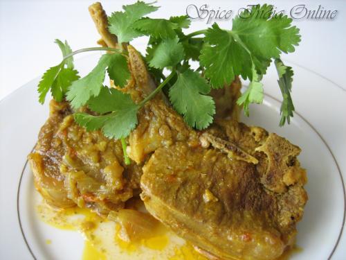 Wash the chops in cold water, rinse a couple of times and marinate with ingredients from table-1 (Yougurt, turmeric, ginger garlic paste, salt and finely minced green chili). Let this sit for atleast 1/2 hour.