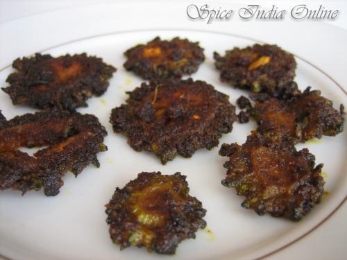Do not discard the marinade, fry along with the karela. These fried gourds will look lightly crispy on top and soft on the inside but gauranteed to taste less bitter.