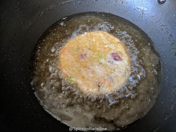 Meanwhile heat oil in a pan or kadai…. you may shallow fry too if you wish. Iam deep frying it to golden.