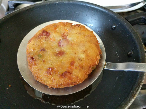 Golden brown patty ready. If packing for lunch box, cool them completely before you assemble!