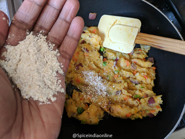 - Adding powdered oats its to keep the patty dry also hold the mashed potato well. You may use corn flour or maida instead.