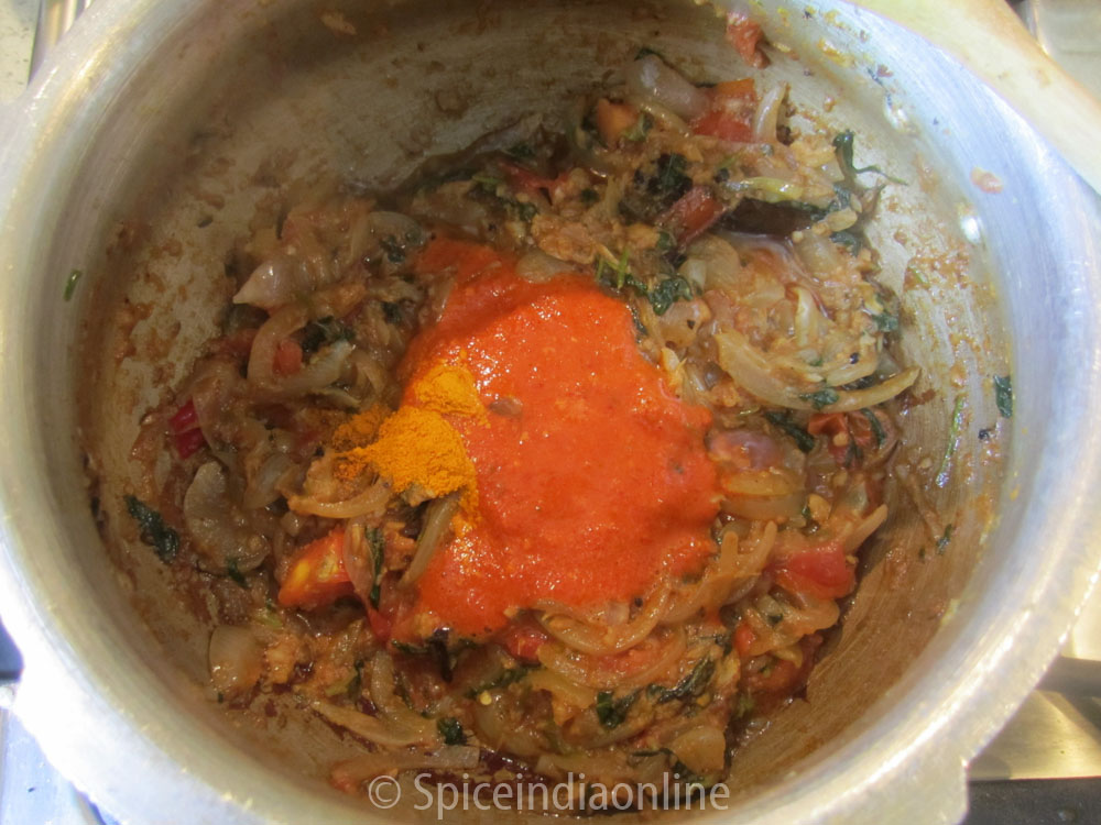 That goes after the onion tomato mixture cooks a bit. Its a long post and I probably slept off somewhere.., lol I did fix it and thanks a bunch!