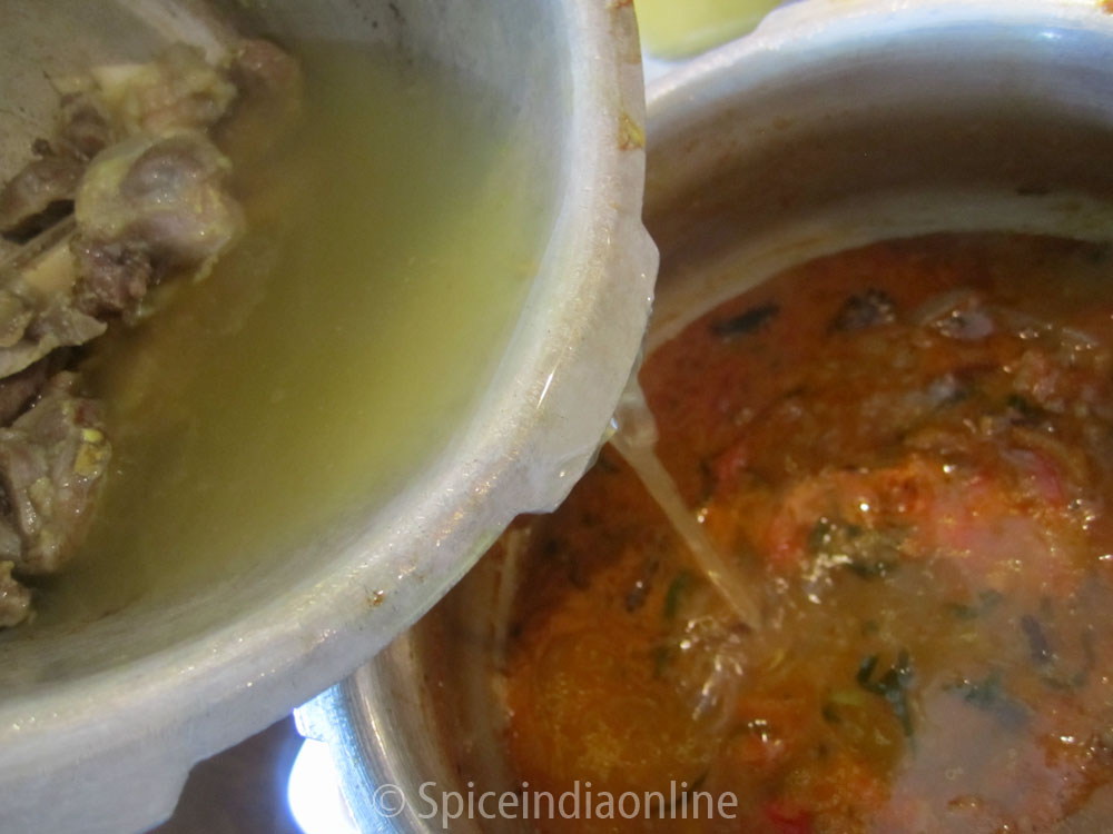 Once the masala cooked to right texture add the cooked mutton along with all the juice/ broth.