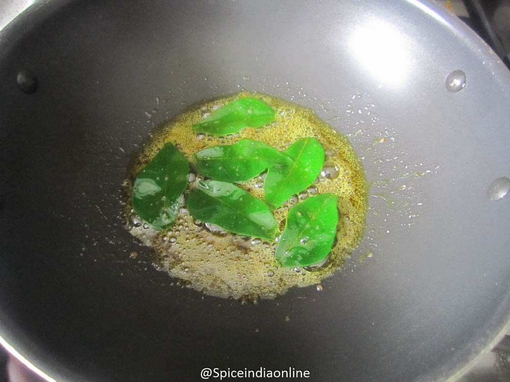 Now in a fry, heat little oil and splutter curry leaves.