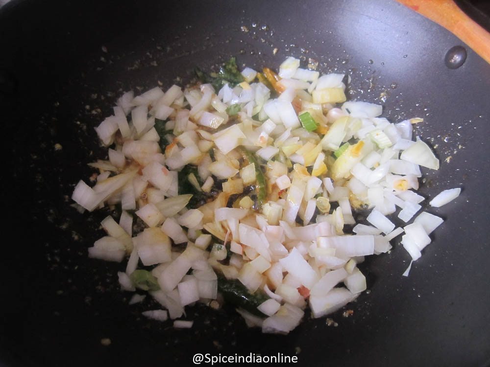 Add in chopped onions to the mixture and fry over medium flame.