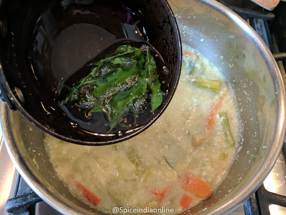 i don’t know if anybody has told this before… if putting curd i mean instead of tamarind, just put the curd in the mixie in which you grind the coconut and turn it just for a second so that the curd will get mixed well in the avial and will not curdle..do this separately after finishing the coconut part, not together with the coconut