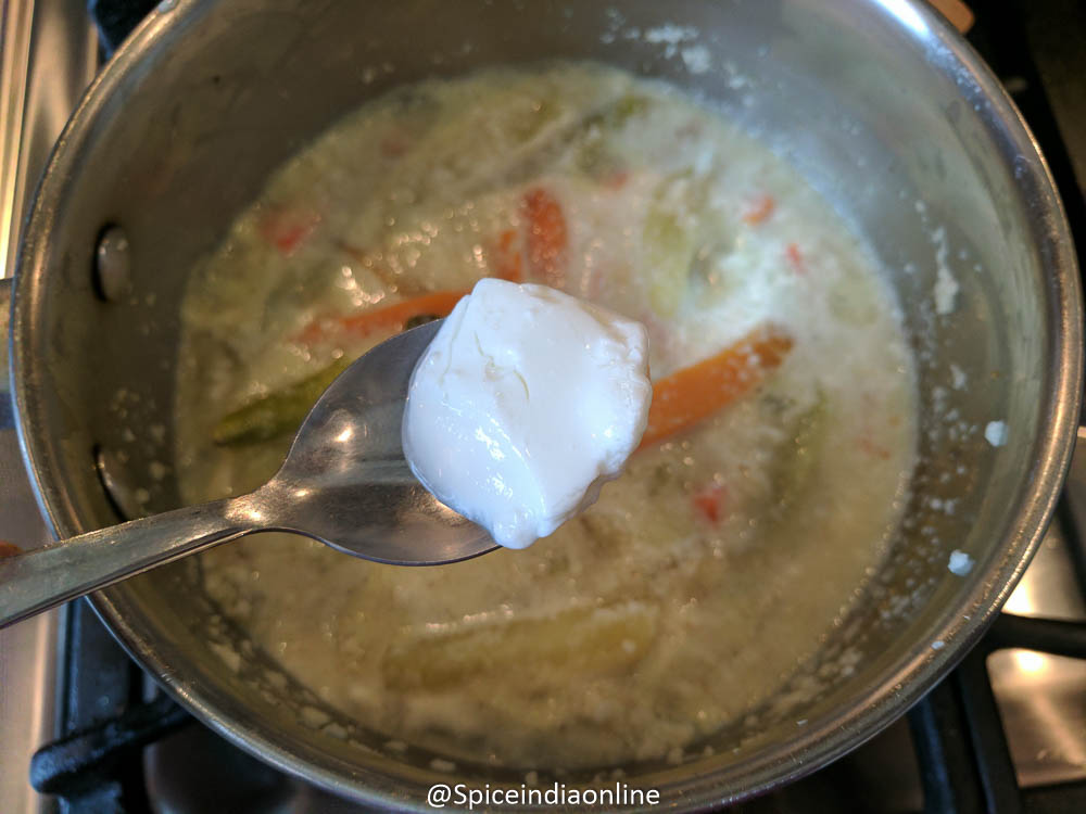 - Adding less yogurt and more coconut gives nice creamy texture. More yogurt and less coconut will yield a sour dish. Choice is yours…