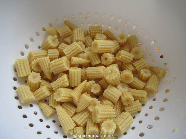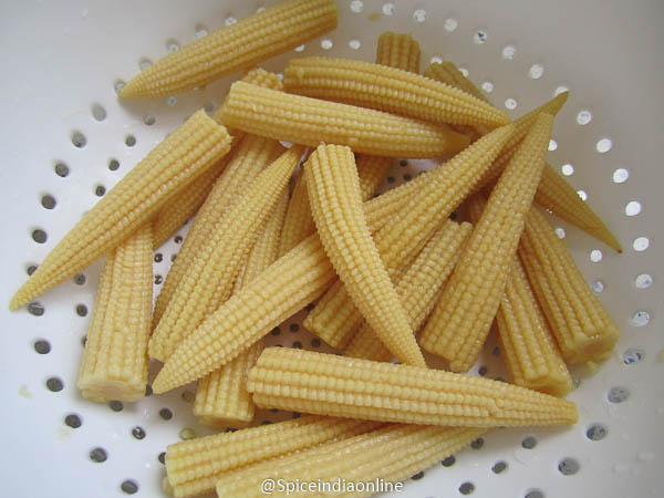 Discard all the liquid from the can, rinse the baby corn in cold water thoroughly. Drain and pat dry.