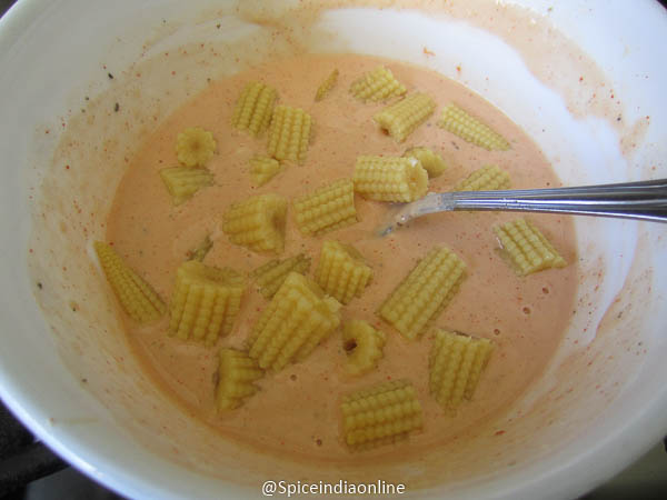 Dunk all the baby corn and coat well.