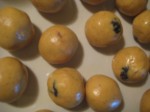 5.Stick the nuts and raisins on each laddoo and make them look apetizing.