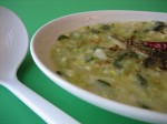 Trim the lower bottom of the bok choy bunch, separate each stalk and wash thoroughly. Chop them finely and wash again, drain and keep aside. Soak split green gram for 1/2 hour, wash, drain and keep aside. Now heat oil in a pan, splutter mustard, cumin seeds, dry red chili and curry leaves. Sprinkle asafoetida, add chopped onion, green chilies, garlic and fry for few minutes. Now add the green gram with 1 cup water, cover and cook over medium flame for 6 minutes or until its cooked fully. Add the chopped greens along with salt and cook further until the leaves gets wilted (about 3 minutes for baby bok choy and 5 minutes for matured stalks). When done add the grated coconut and chopped tomatoes, simmer for few seconds and switch off. Serve hot with rice topped with ghee.