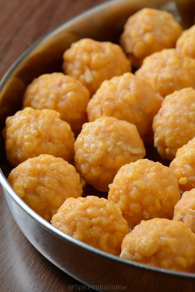 • If the boondis turn too juicy or too dry… only fix is to pulse them in a mixer jar and then shape them into laddus. Boondi won’t look round but will still be tasty to eat.