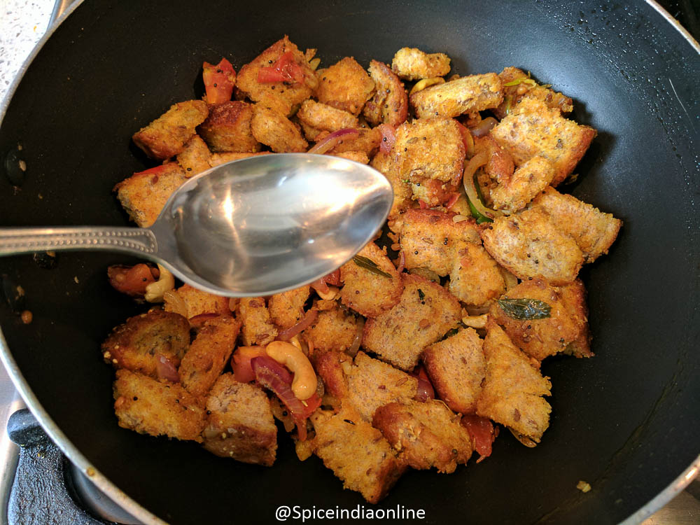 Add a teaspoon of water just to make sure the masala gets soaked in the bread and also helps to keep the bread moist.