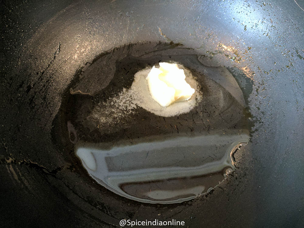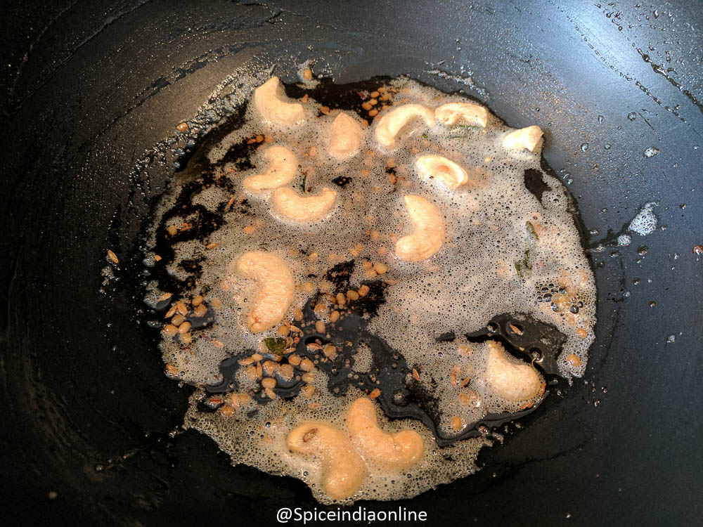 Temper with mustard seeds, split black gram, cumin seeds & curry leaves. Also add in few cashew nuts and toast them along. (This is optional but adds little richness to the dash)