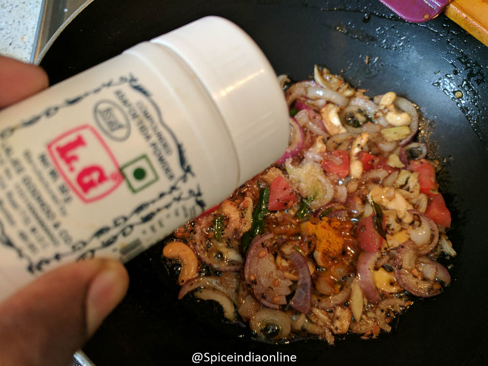 Add in little turmeric powder, red chili powder, salt and saute well.