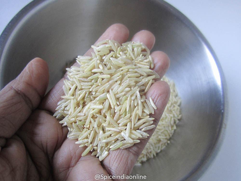 - Short Grain Brown Rice – This type is bulk & sticky. Needs 1 hour soaking time. Needs less water and less cooking time. If using short grain brown rice for this recipe then use 3 cups water and cook upto 3 whistles.