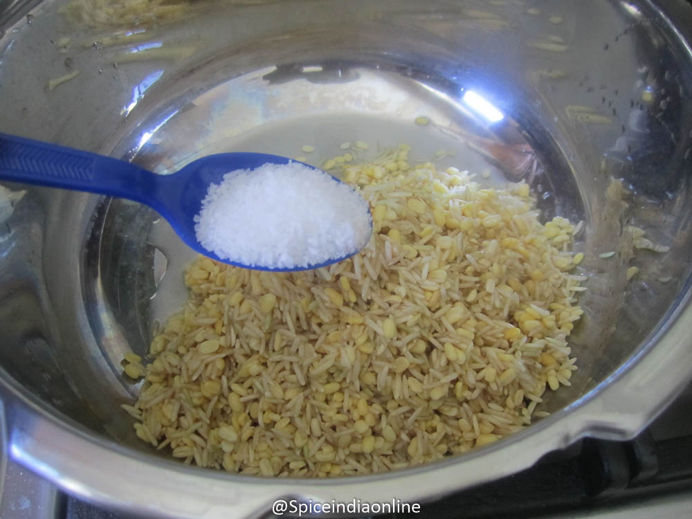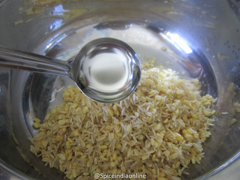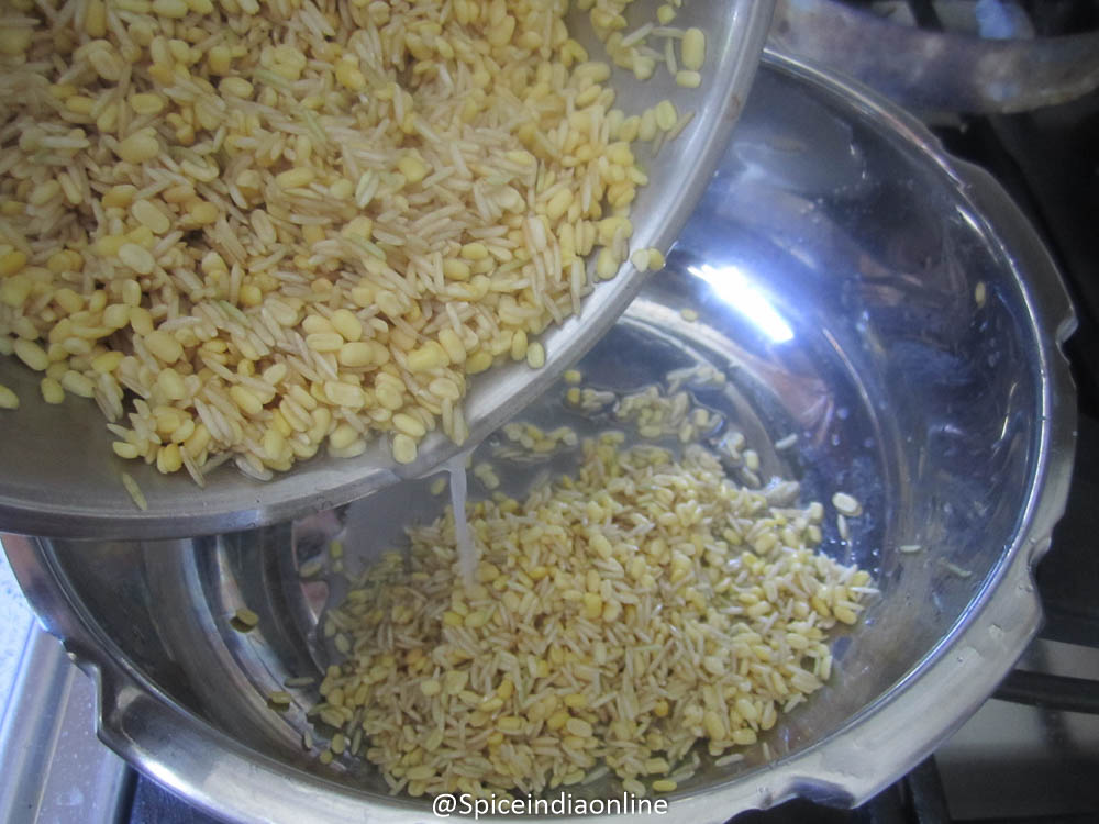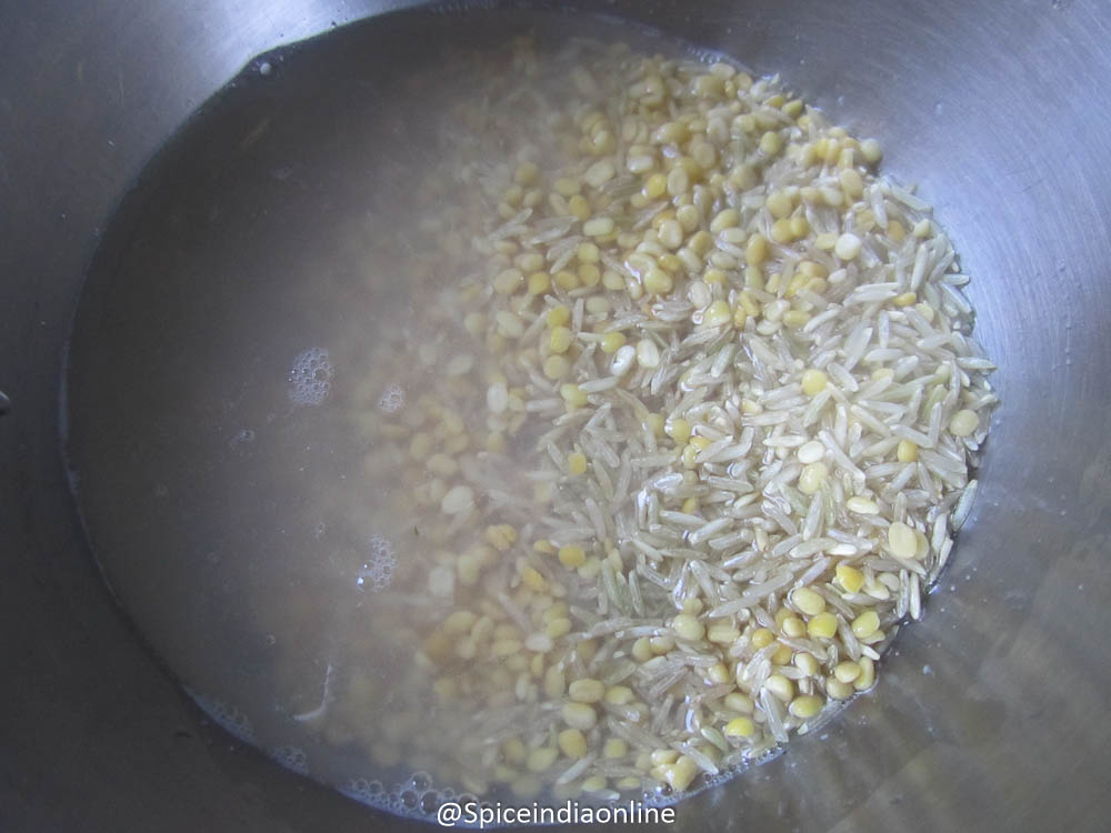 - Moong dal can be either dry roasted or soaked. I prefer to soak along with rice.