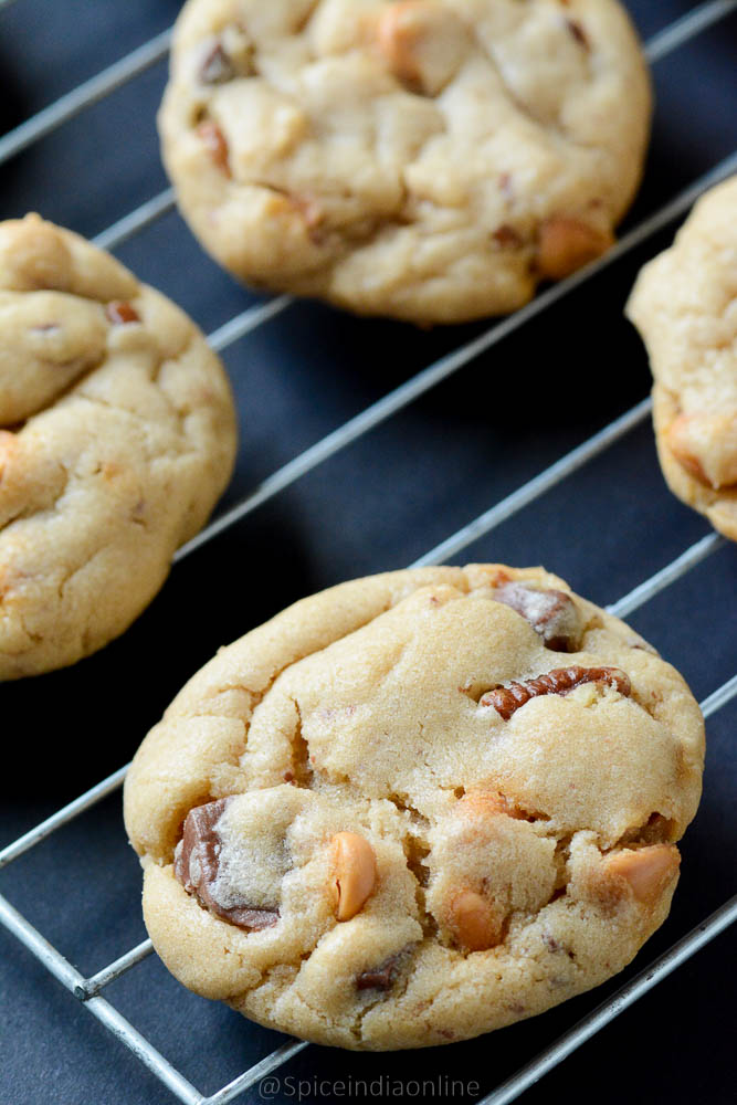 Gather the dough and wrap it up in a plastic sheet and refrigerate for an hour, they help to yield good results.Butterscotch Chocolate Chunk Cookies