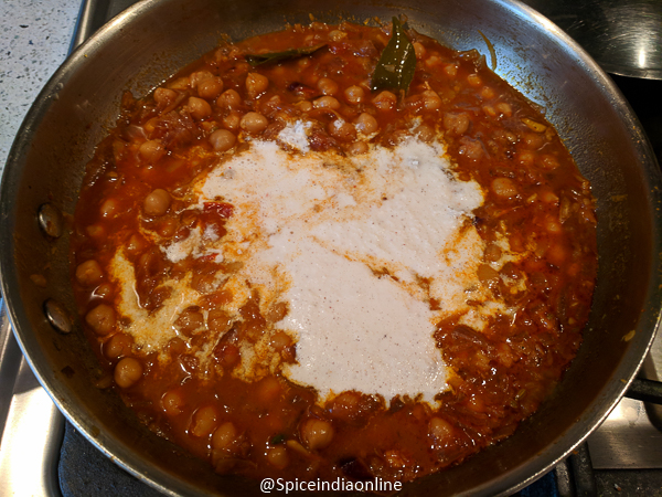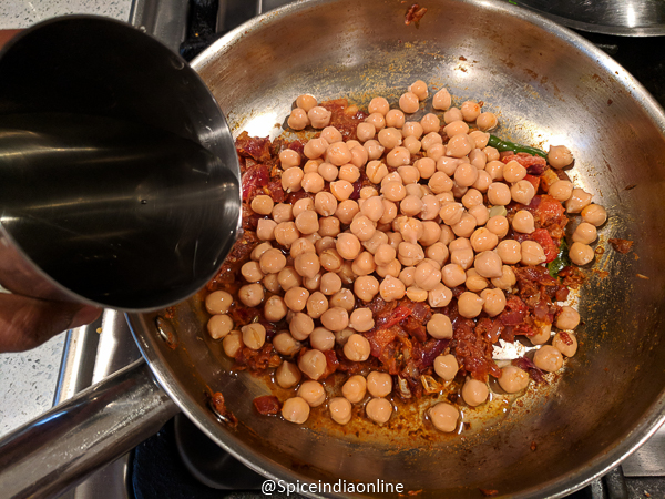 Now add the cooked channa along with the water in which it was cooked….(If you plan to cook the soaked channa then add little extra water and pressure cook for 4 to 5 whistles)