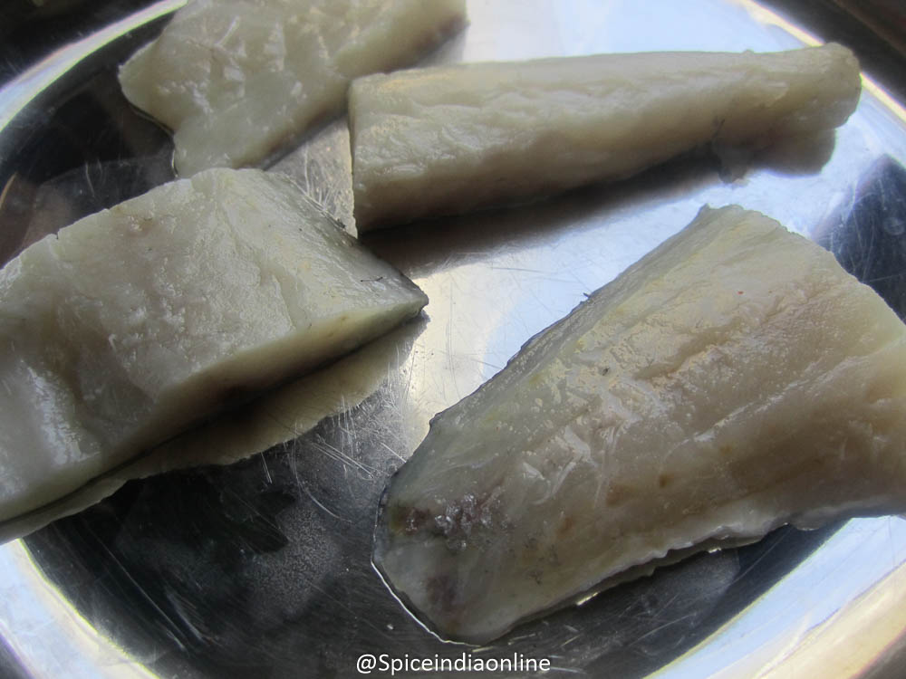 Clean the fish and take them in a plate. I have used boneless fillet type fish with skin on one side. You are welcome to use any kind or type of fish for this recipe. Vanjaram, Vavval, Koduva, Thengai paarai, Sheela, Tilapia fish suit for frying.