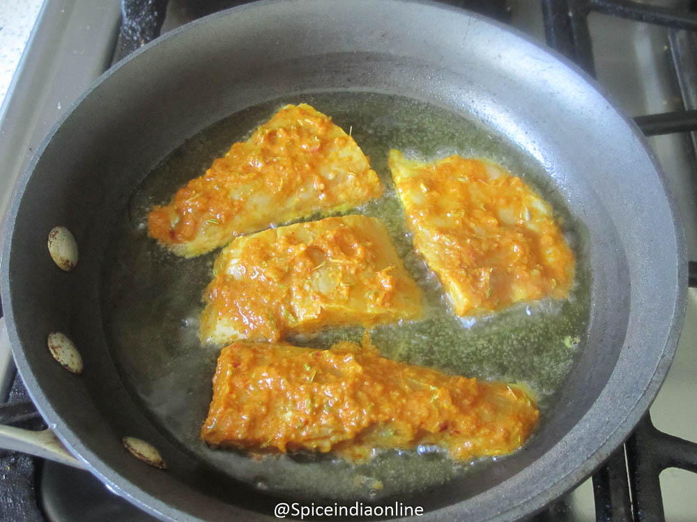 Apply the masala all over the fish and massage. Let it marinate for 15 to 20 minutes.