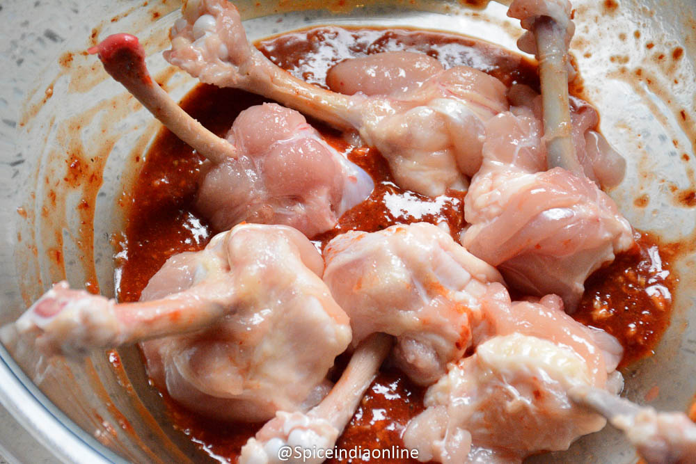 Add in the chicken lollipop and coat them all over. Let it marinate for 30 minutes in the refrigerator.