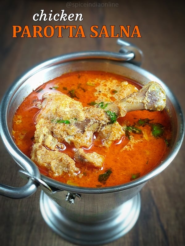 Salna, a popular gravy type dish hailing from Madurai, Tamil Nadu that is served with parotta or biryani! Typical Parotta Salna recipe involves roasting, grinding blending of fresh spice powder or masala paste. In this post you we learn how to make the simplest Tamil Nadu Style Parotta Salna Gravy using chicken, without compromising on taste, color and consistency!