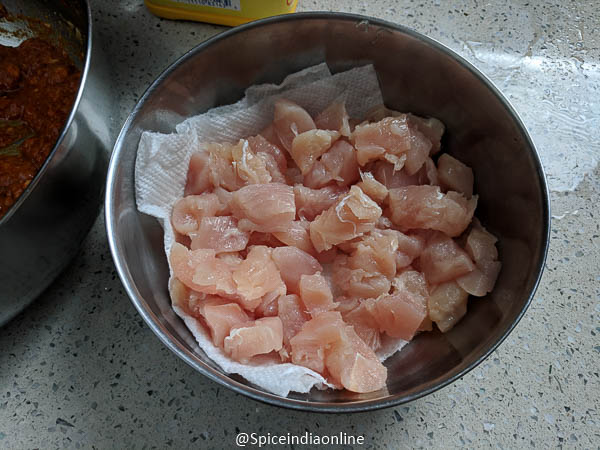 Boneless chicken works best for this recipe…. Clean you chicken and pat dry with a paper towel to drain all the water content from washing. Check some of your Chicken Recipes