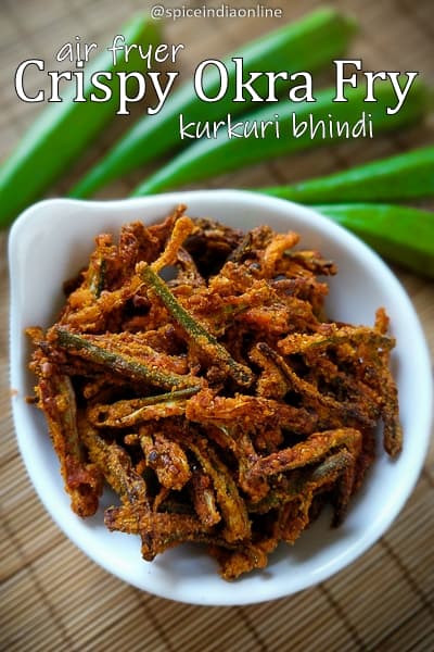 Crispy Okra Fry | Kurkuri Bhindi | Air Fryer Okra an easy and simple ladies finger fry recipe made with okra. Its a spicy snack made by coating tender okra with chickpea flour and spices. Typically this north Indian snack is deep fried but today we will keep it healthy by air frying!