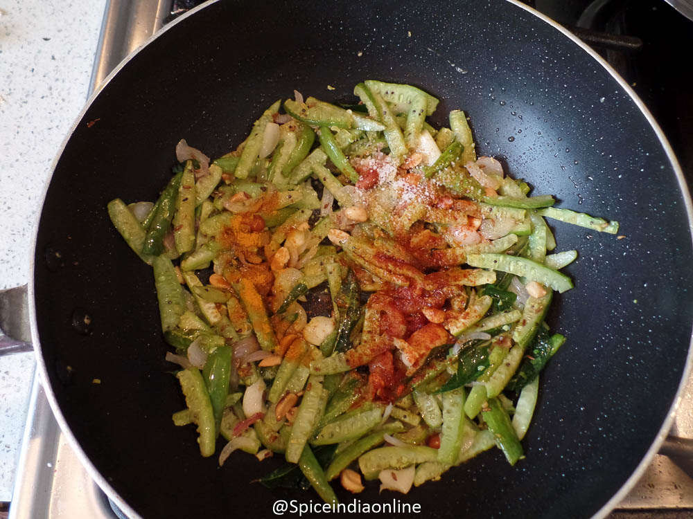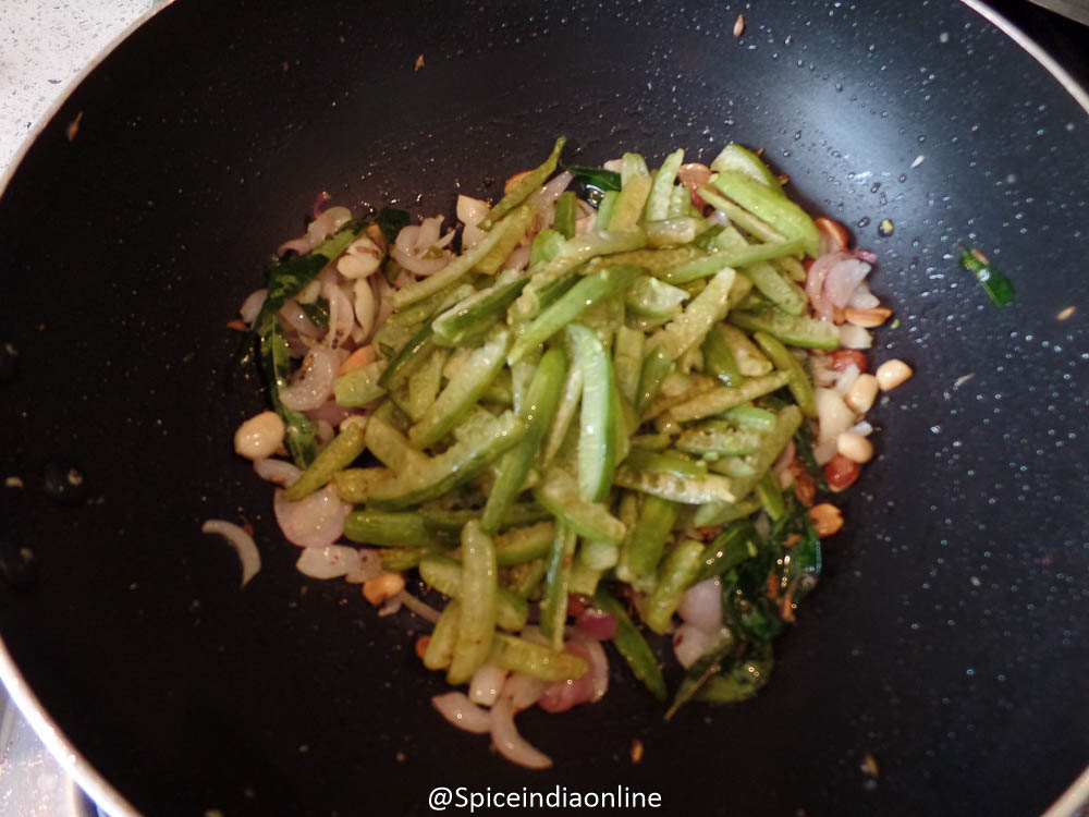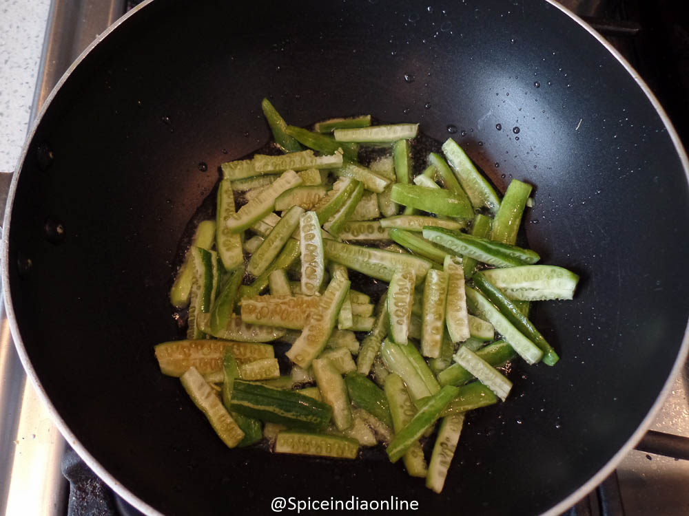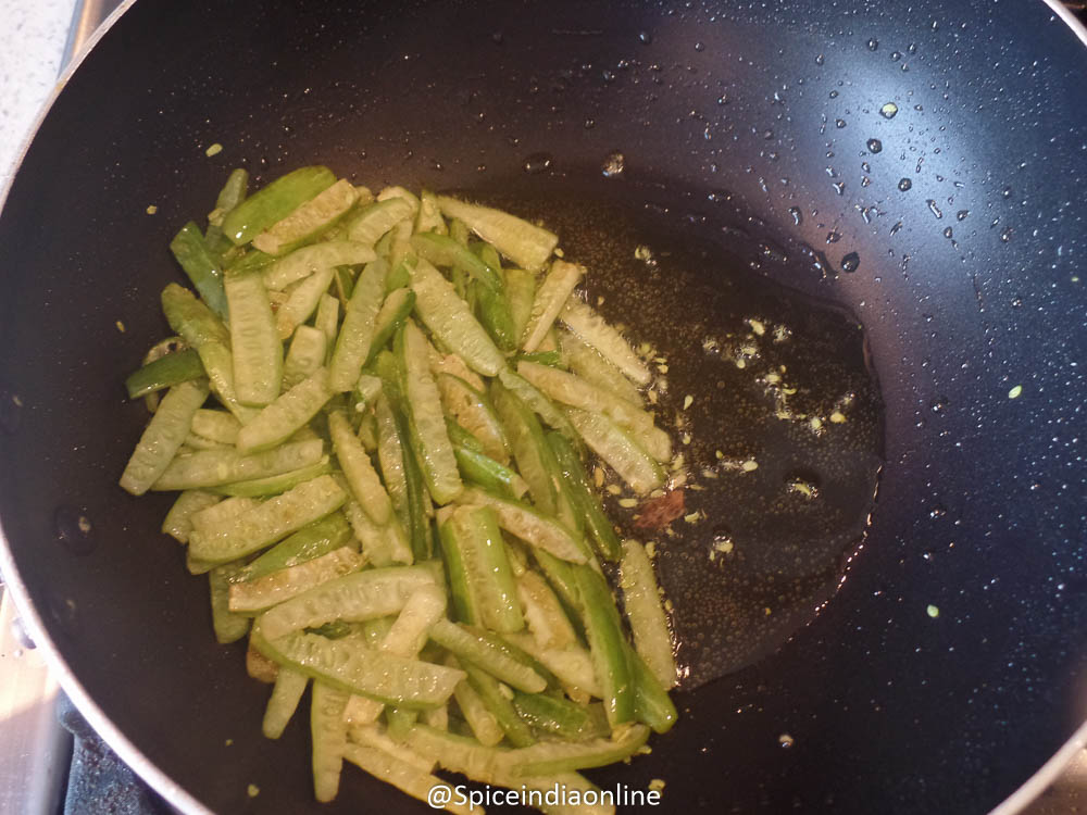 • Traditionally this gourd is deep fried for this dry curry, shallow fry works too.