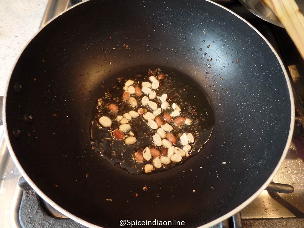 Light heat up the same oil and fry the peanuts.