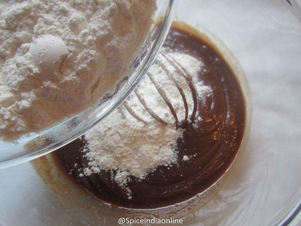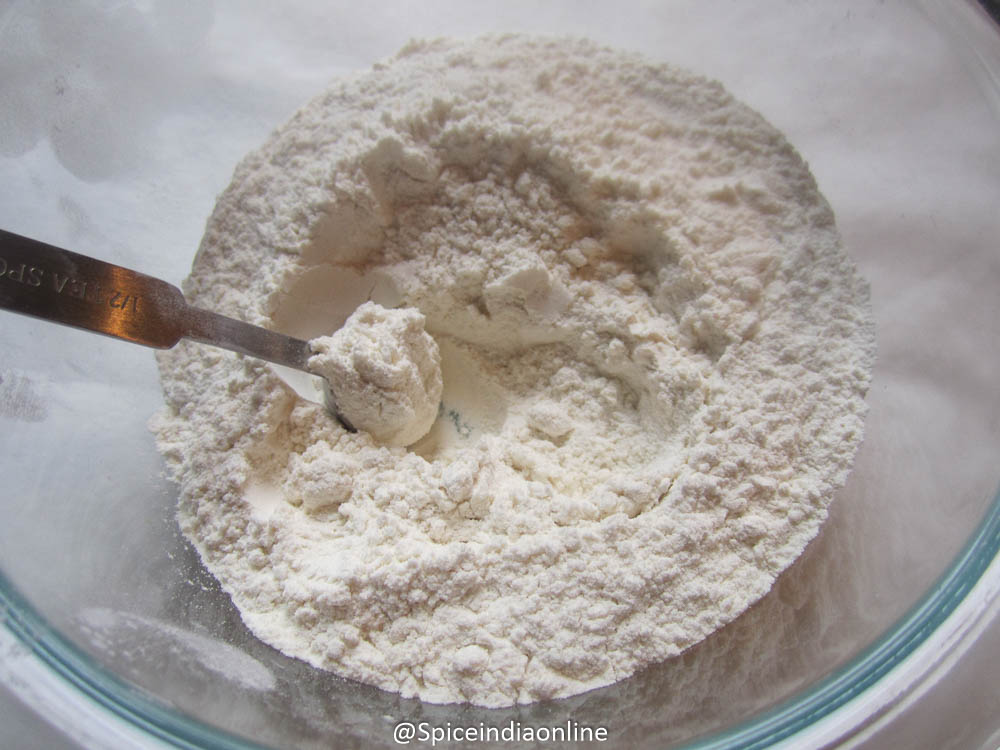 Now sieve all the dry ingredients together… All purpose flour, baking powder and salt.