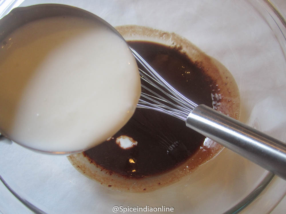Now add the yogurt to the chocolate mixture. (I have used light/thin consistency yogurt almost like a thick buttermilk)
