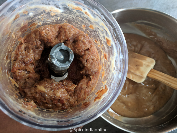 You may either grind the dates with milk to chop the dates or lightly pulse in a food processor. I would like to see teeny tiny bits of that dates in my cake so i lightly pulsed it. Add that to the mixture.