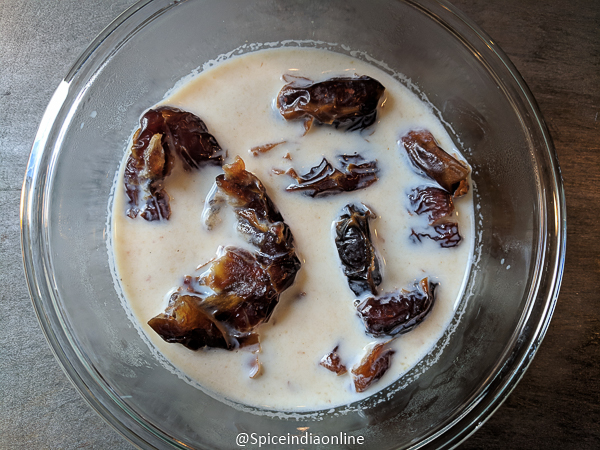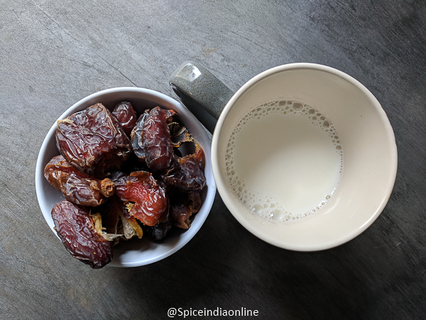 • Soak dates in hot milk for few minutes.