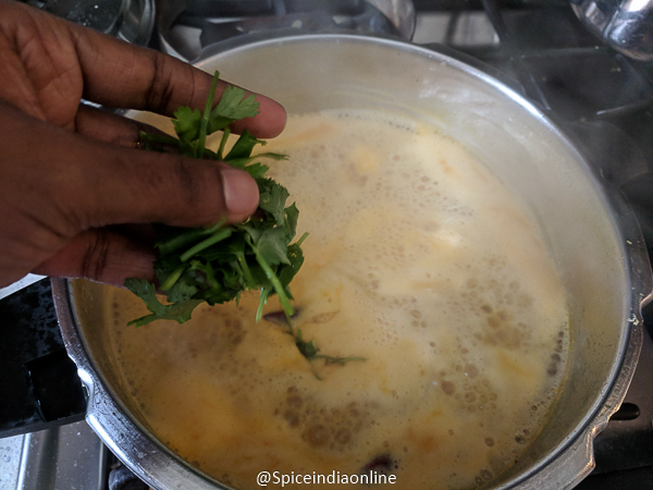 Switch off, garnish with coriander and curry leaves!