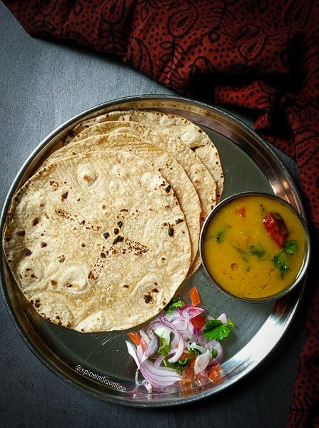 & that was our Dinner….. soft chapati with creamy gujarati dal and some raw onion salad on the side!