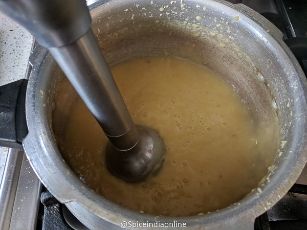 Once the dal is cooked… let it sit to cool and bit and using an immersion blender…. blend well.