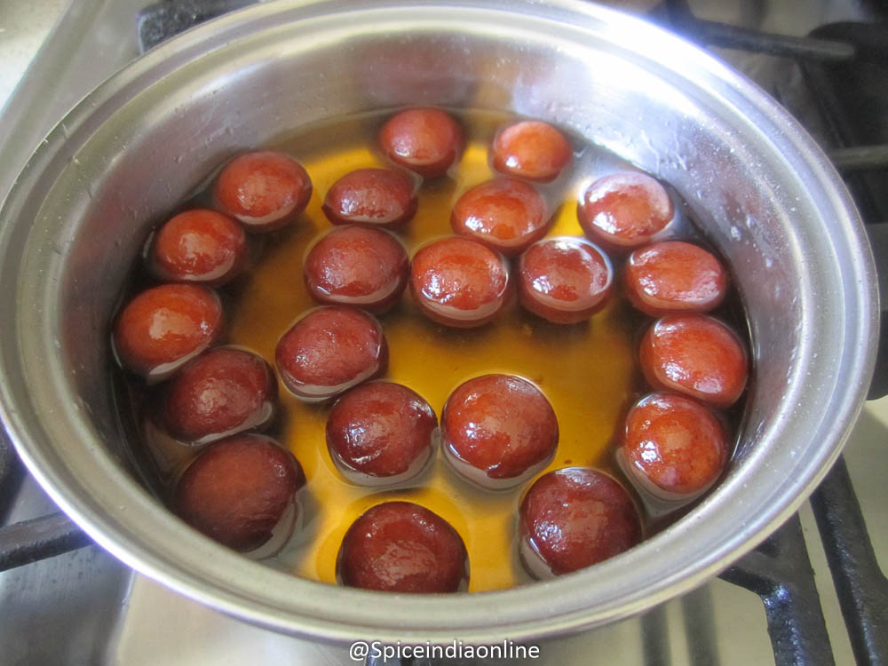 - The sugar syrup should be warm when you add the jamun otherwise they won’t absorb the syrup properly.