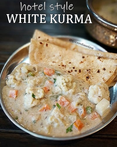Hotel Kurma has many versions but we always drool over the hotel style vegetable vellai kurma that is normally served with chapati. This kurma is usually white in color and referred as ” Vellai Kurma” or White Kurma.
