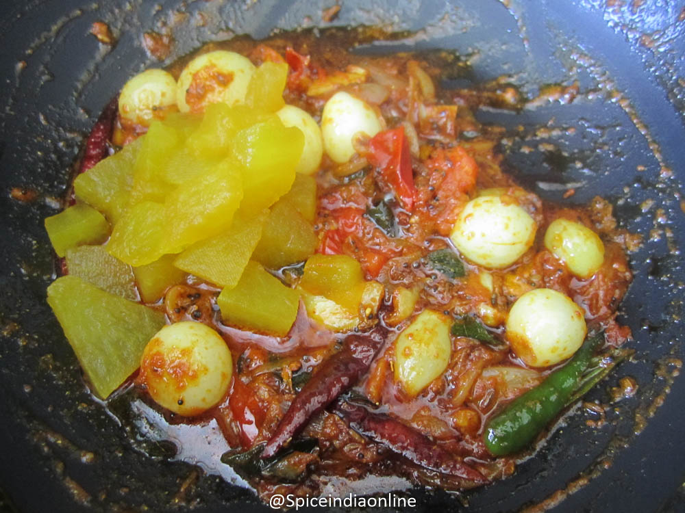 Add in the cooked white pumpkin along with the pumpkin juice.
