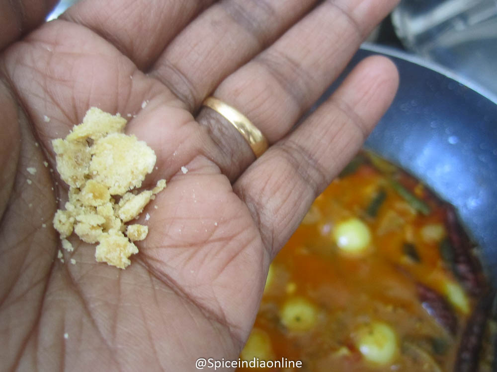 - Adding copara thengai or dry desiccated coconut is another highlight for the recipe, do not skip that part.