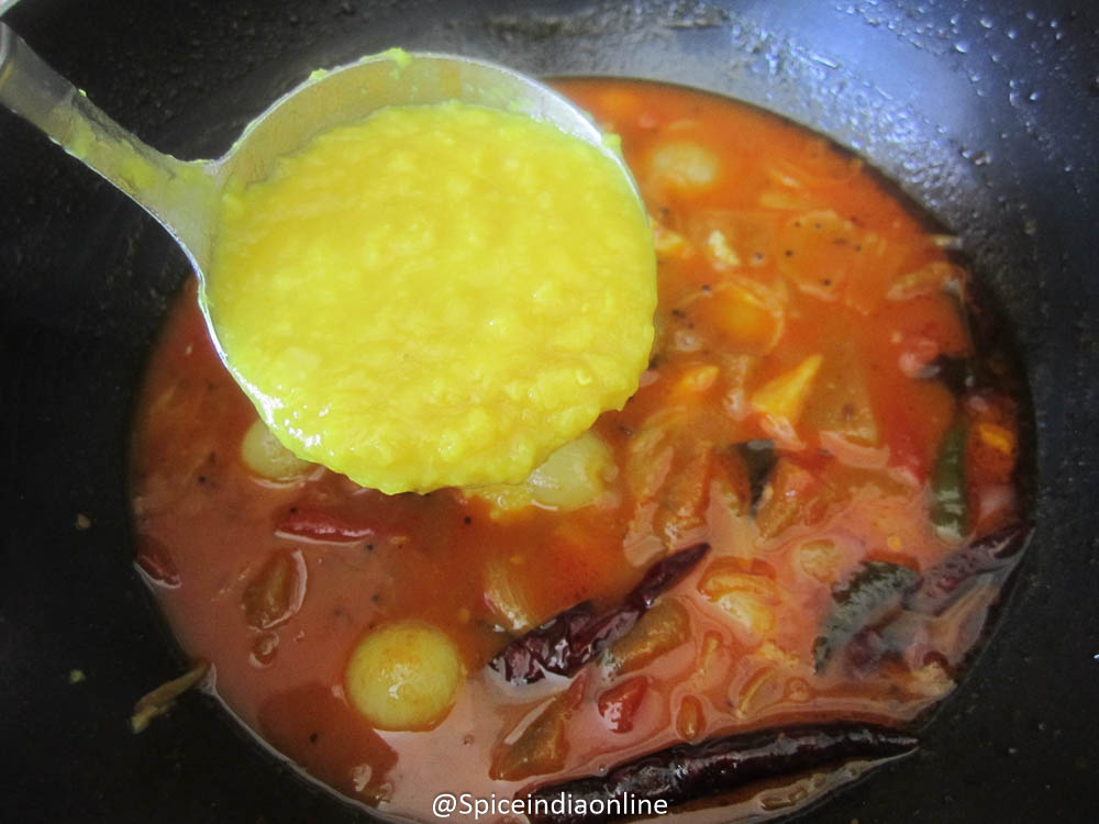 - Adding a few teaspoons of masoor dal to toor dal will bring a nice flavor the sambar.