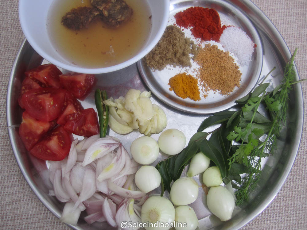| 10 onions | Sambar onions/shallots (soak in warm water to peel off the skin) |
