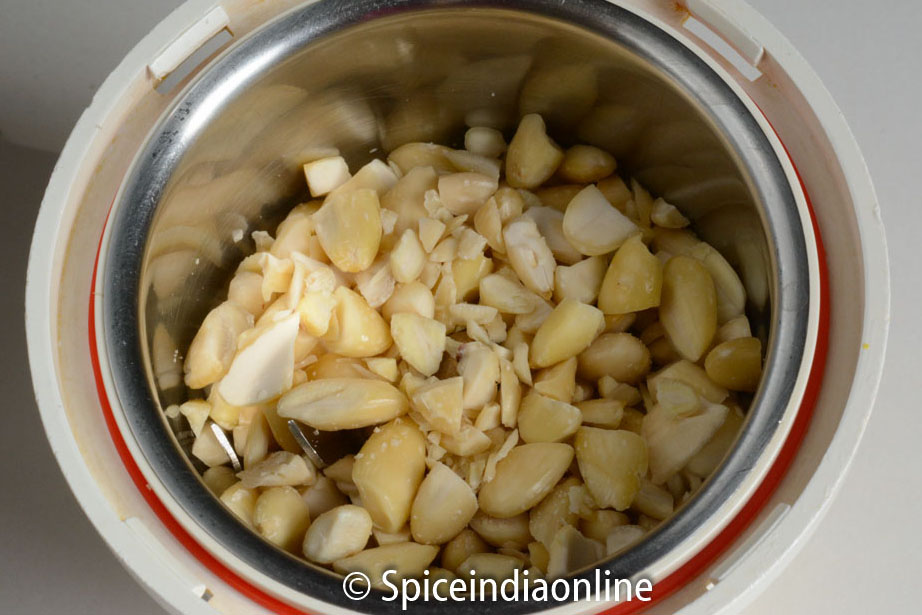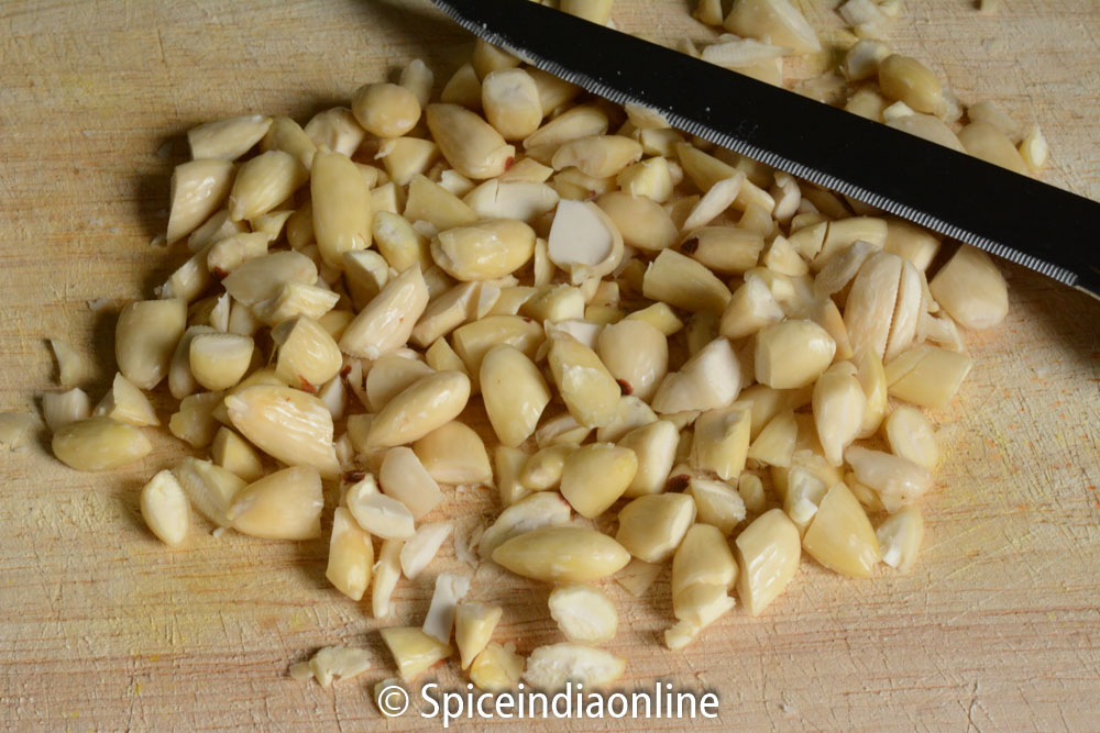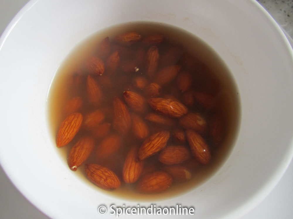 Buy good quality almonds preferably organic if you can afford it. Soak them overnight in enough water with some kosher salt. The next day, discard the water and rinse them a couple times and keep them ready in a bowl.