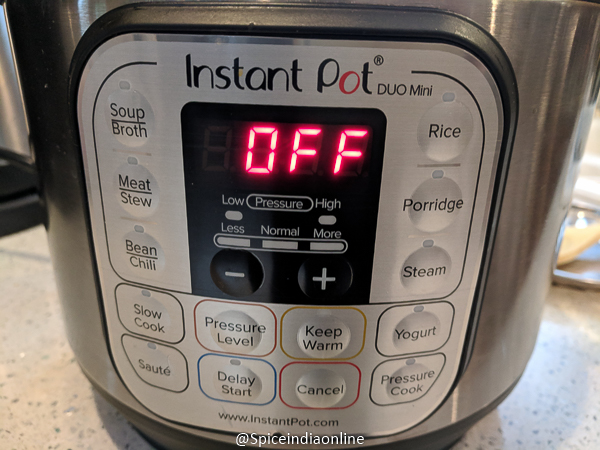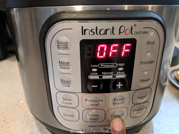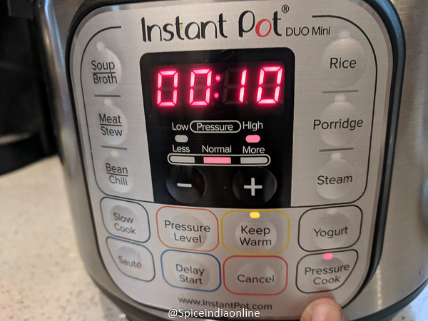 • Cook for 10 minutes  PRESSURE COOK MODE (high pressure) and do a natural steam release.