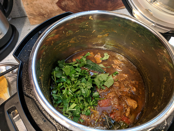 • Carefully open the lid, garnish with coriander and curry leaves.